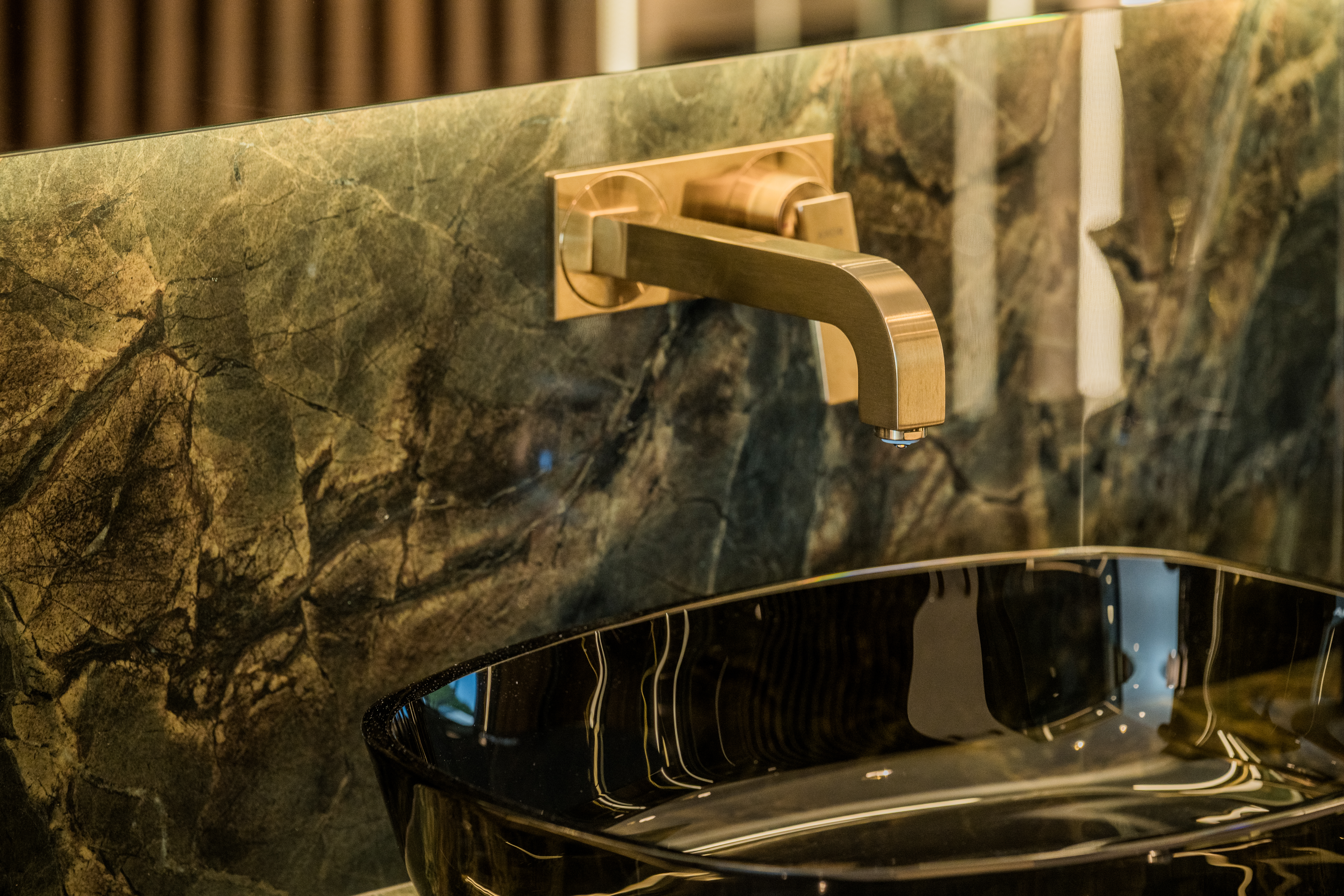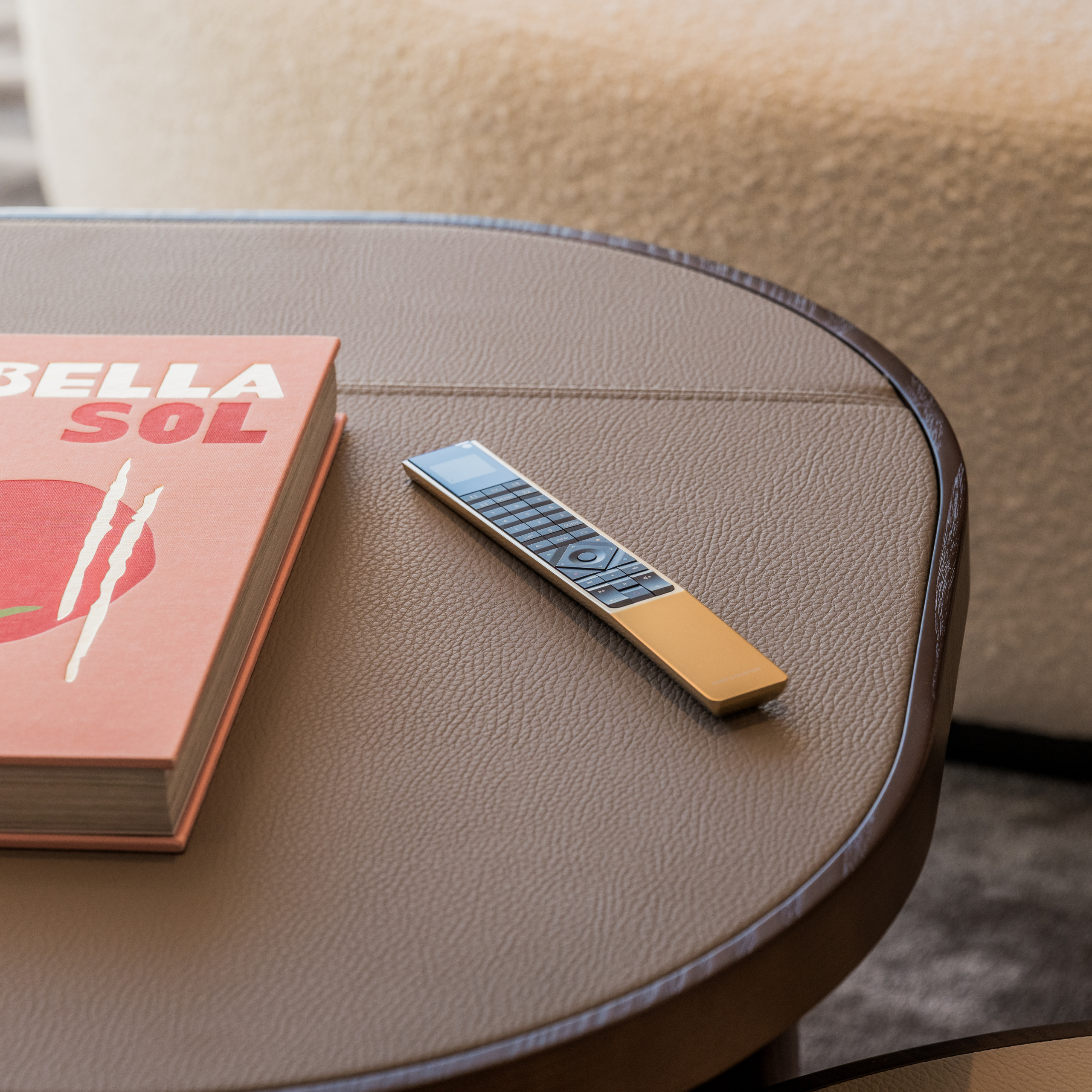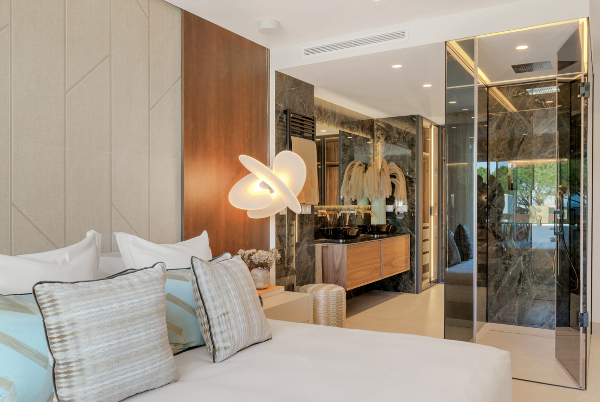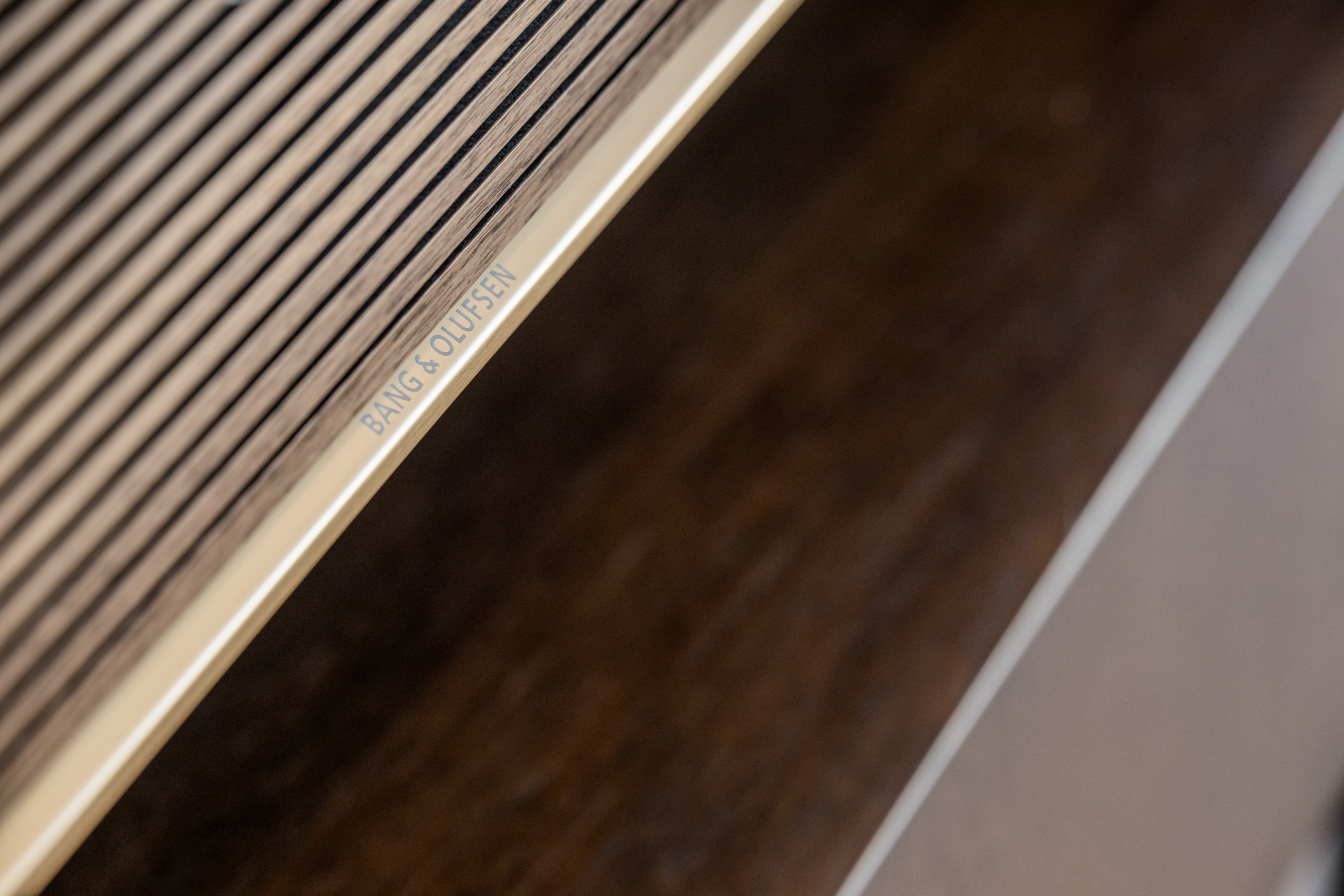 such as an electric fireplace, a Bang & Olufsen sound system, and custom-made wardrobes elevate the